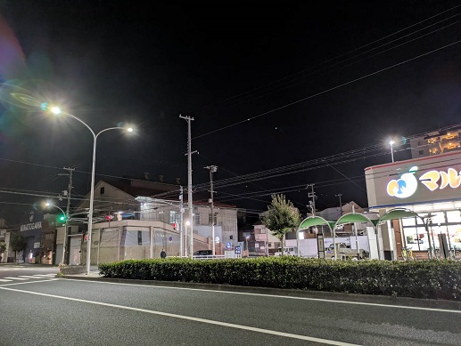 7時半には終了となり、サクサク「大開」駅にもどっていく。途中、そういえば音楽センターはほとんど写真にとったとがないなと、振り向いてそちら方面をカシャリと1枚。23年5月から、とびとびだが2年半通った場所である。