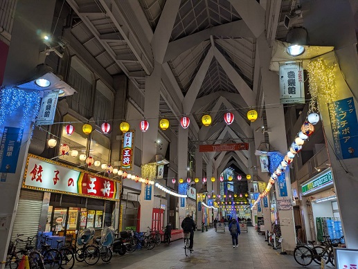 7時半には会場をホイと出て、写真を撮らなかったと気づいて夜の商店街の様子をカシャリ。