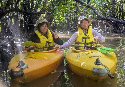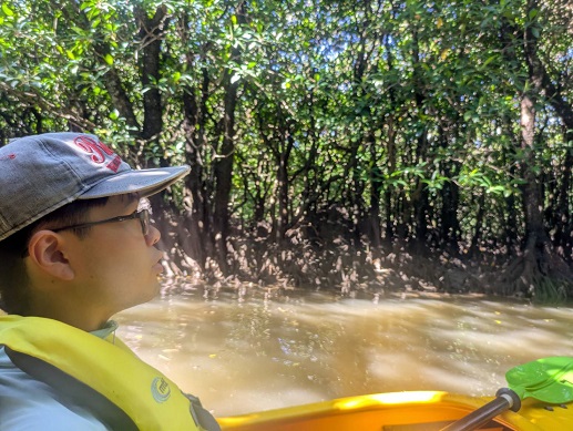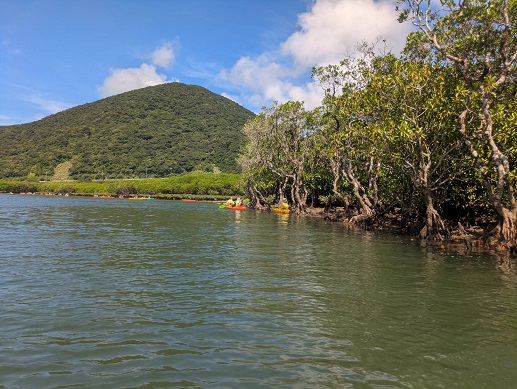 9時にはマングローブの中でのカヌーの開始。「マングローブは木の名前じゃないんですよ。汽水域にあるこうした森全体のことなんです。ジャングルは木の名前じゃないでしょ、同じなんです」。なるほどねえ。