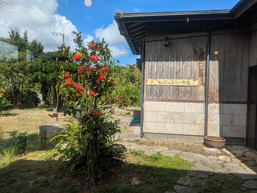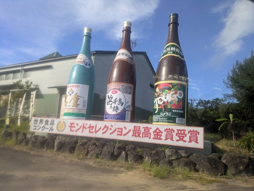9月23日(火)は7時起床の朝だった。7時半にはすばやくごはんを食べて、8時すぎには4人で出る。例の黒糖焼酎3本セットの前を通るが、クルマの中からの写真はむずかしい。