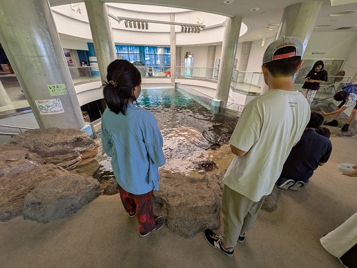 足元に集まるカメたちに、エサのレタスをあげていく。これも8年ぶりのことなのだか、新参ズは2人ともそれを覚えていた。