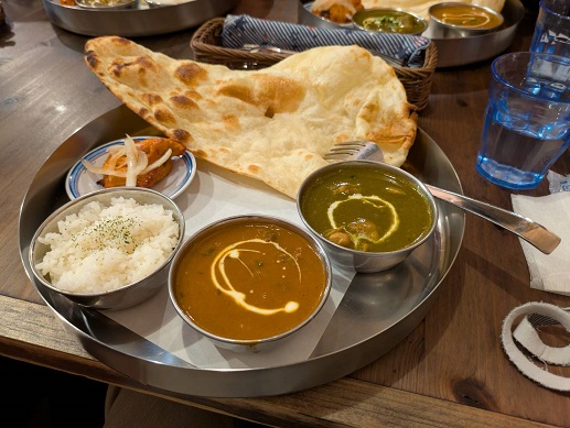 7時半前にはすばやい終了となっていき、教員3人、学生5人で西北のカレー屋さんで打ち上げとなる。 わが身もレディースセットなのであった。