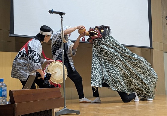 獅子舞から今年最初のお話を、『平和運動』ゲラもガッシンと