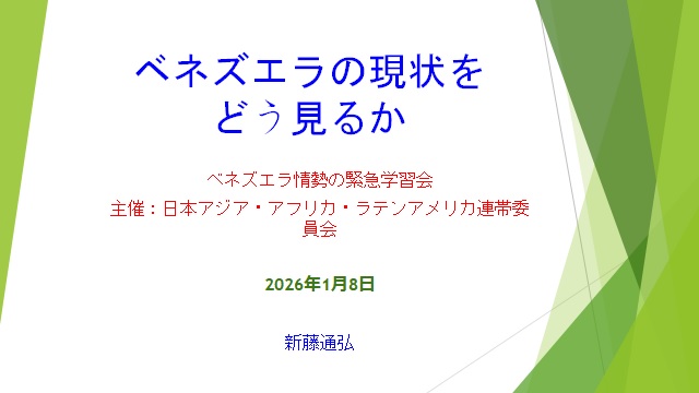 ノロノロ動いて昼のごはんを食べていき、ネット情報をカシャカシャカシャ。1時半には早めにオンラインに入り込み、2時から日本AALAによるベネズエラ情勢学習会に参加する。講師は新藤通弘氏で「ベネズエラの現状をどう見るか」と題して1時間ほどのお話が。その後、休憩をはさんで質疑が4時すぎまでつづいていく。