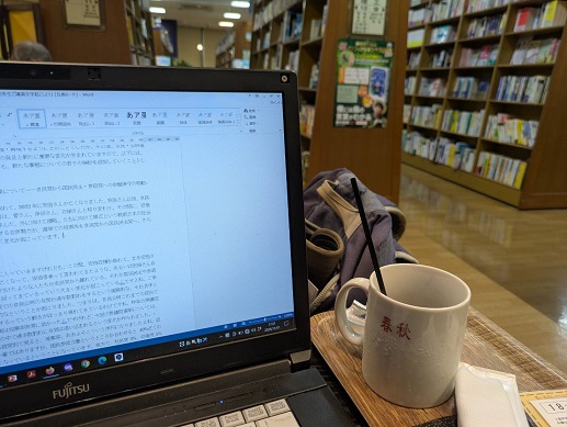 それぞれ三方にわかれていき、こちらは阪急「梅田」から「西北」へ。そのままいつもの本屋の喫茶コーナーへ。がんばって「講演録整理の人」となっていくが、思った以上にアルコールが効いており、作業はほとんど前に進まず。