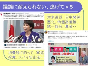 4)高市自民による目玉は食料品2年の消費税減税だが、参院選で反対した、その後も「レジシステムが」と反対し、いまも減税「実施」でなく「検討加速」しか公約にしていないと厳しく批判されている。5)ただし消費税減税は多くの党が主張する、「財源」をしっかり示しても、それだけで大きな得票には結実しない。「財源」論の土台として脱「財界・アメリカいいなり」の姿勢を大きく打ち出すことが必要では、など。