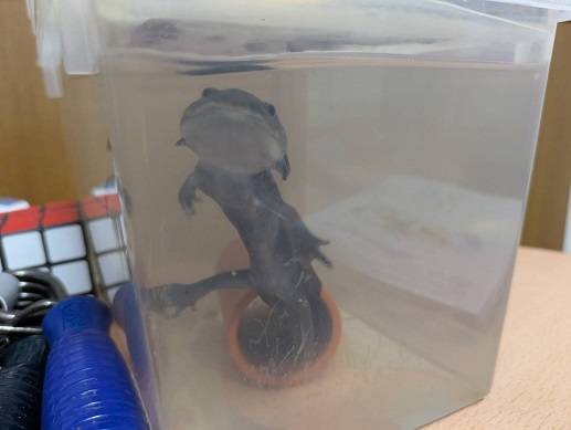 いつもの冷蔵庫野菜室からウパ先生を外に出す。いつものように少食だが、水温があがるにつれて元気に動きだす。燃費のいい生き物である。