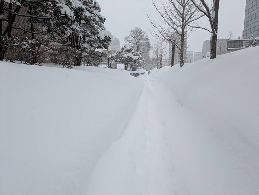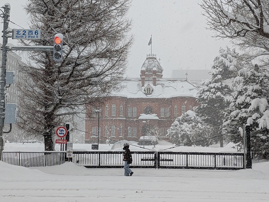 外にもどって、午後の会場の札幌市教育文化会館に向かっていく。歩道には人1人が歩く程度の道幅しかなく、すれちがいには互いにカラダを寄せる。