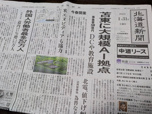 大阪(伊丹)空港から自宅に直行。8時すぎの帰宅となり、ただちに洗濯物を片づける。ウパ先生もお元気だった。9時前にはコタツに入っていき「明日のパワポ」を確定する。ネット情報をカシャカシャやって、11時にはお湯割りクピリ。北海道からのお土産は、こちらの「道新」1部のみだった。