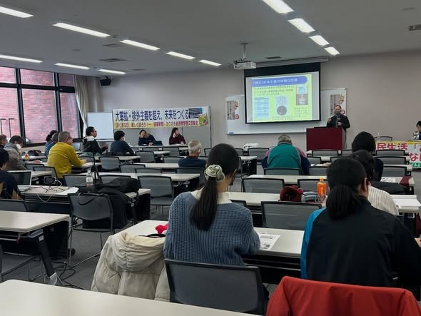 12時半すぎには会場に到着する。主催のみなさんと話をすると「大変です、空港までのJRは止まってます」「高速バスも止まってます」「高速道路も一部区間閉鎖です」ということで、一気に本日の人生の瀬戸際に立たされていく。そんなマクラも振りながら、ともかく予定の70分をしゃべっていく。会場は30~40人で若い方の姿もそれなりに。オンラインはどれくらいのご参加だったのだろう。