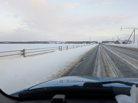 企画はまだつづくが、3時すぎには一足先に出させてもらう。「地道で行ってみましょう。ダメならもう一泊です」ということで、北海道革新懇事務局長のクルマに乗せていただく。頼りはグーグルナビであり、あちこちの渋滞を回避しながら「こんな道走ったことないなあ」「ここどこだろう」と語る事務局長の横で、2時間近くを走っていく。