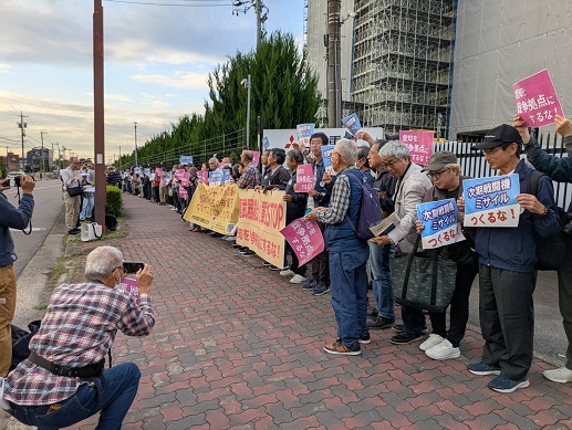 愛知県の自衛隊基地、武器製造を行なう三菱重工業の工場前へ