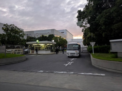 つづいて三菱重工の小牧北工場に移動。ここでは陸上自衛隊の12式地対艦ミサイル能力向上型(これまでのものは長さ5mで射程距離200キロ、能力向上型は長さ9メール射程距離900キロなので両者はまるで別物)などが生産されている。夕方のラッシュのためにここではスタンディングの時間がとれず、とてつもなく広い敷地を外からながめるだけとなる。