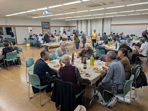 バスの中で隣り合わせになったM藤さんは最後を琉球大学で終えたという近代文学や国語の先生。PFAS汚染の可能性があって研究室の水は飲めなかったなど、あれこれ沖縄の実情を聞かせていただく。7時すぎには参加希望者たちが労働会館での交流会に集まっていく。同じテーブルには神奈川や静岡の平和委員会のみなさんも。多くのメンバーがマイクを握り、こちらも一言。大阪平和委員会の事務局長からは新しい歌を「仕込んでいる」との新情報も入る。遠からず披露されるのだろう。