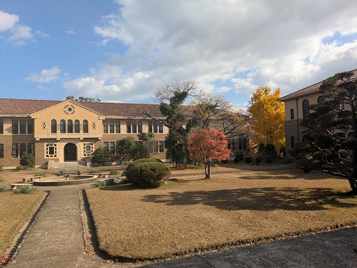落ち葉拾いもホイホイやって、1時ちょうどには神戸女学院大学へ。中庭はすっかり秋の色。