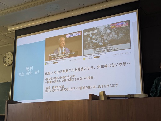 科目「先住民族アイヌ」の学生報告会、資本論原稿もパチポチと