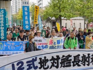 愛知県の自衛隊基地、武器製造を行なう三菱重工業の工場前へ
