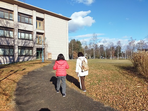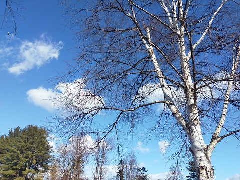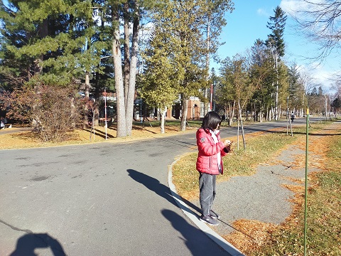 妹新参は、白樺の皮を薄くはがすことに熱中。