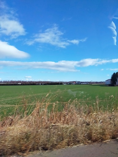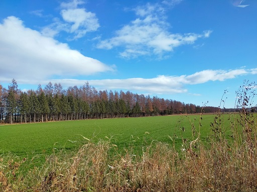 遠くまで畑がつづいて、空が青い。