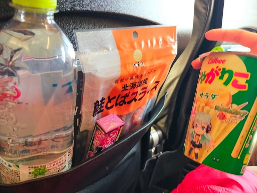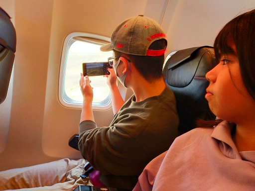 妹新参は万全の機内お楽しみ準備。