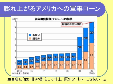 「軍需企業献金パワポ」をカシャカシャカシャ。