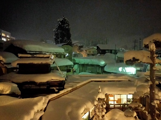 湯からでて、すぐにカラダにあたる雪が冷たい。