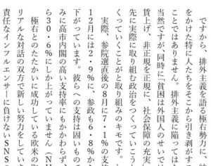 一言メッセージカード、来年度議案の執筆分担、「排外主義の原稿」を